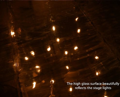 Fast installation and removal of the floor was essential due to the short turnaround time between acts. With a combination of super-fast lay-flat technology and a stunning high-gloss finish, Le Mark’s Harmony™ High Gloss stage floor met the brief perfectly.