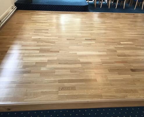 Andy required the wooden sprung floor to be positioned away from the walls so oak ramps had to be placed around the perimeter of the floor for a seamless finish, as well as for health and safety purposes.
